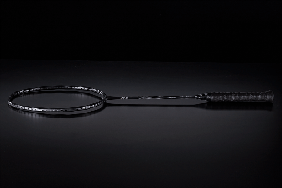 Inferno frame with new graphite MITSUBISHI CHEMICAL PYROFIL increasing shuttlecock speed more 5.1% and makes 2.5% smash angle.